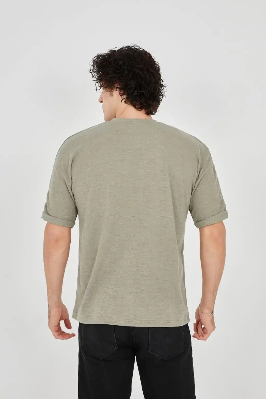 Unisex Jakar Kumaş Rahat Kol T-Shirt - Açık Yeşil