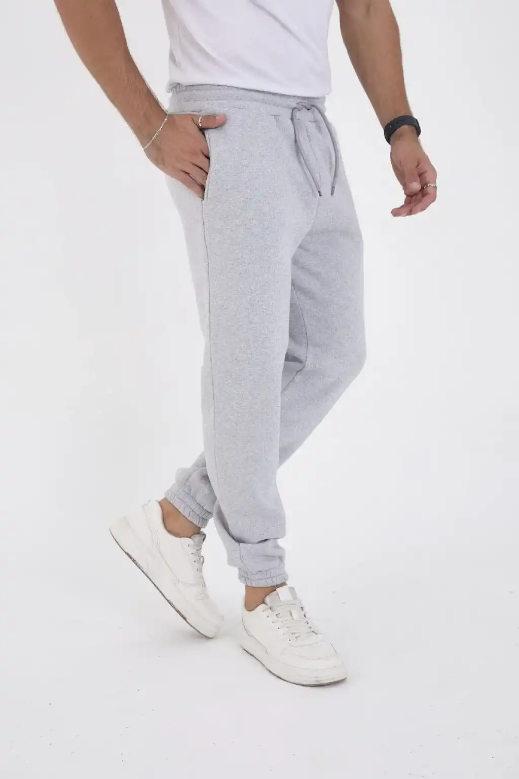 Erkek Üç İplik Alt Eşofman Lastikli - Gri