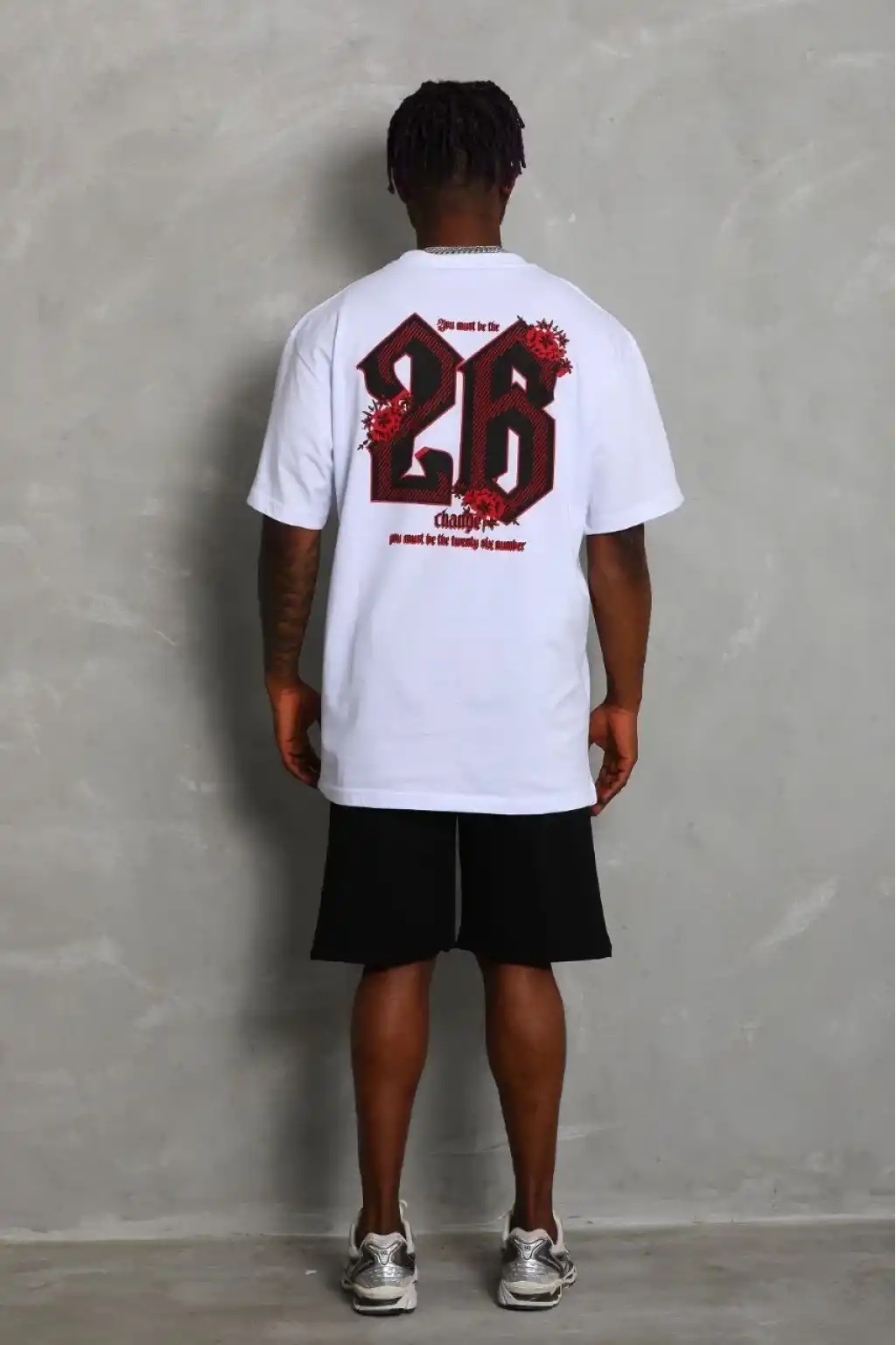 Unisex Oversize Baskılı Bisiklet Yaka T-Shirt - Beyaz