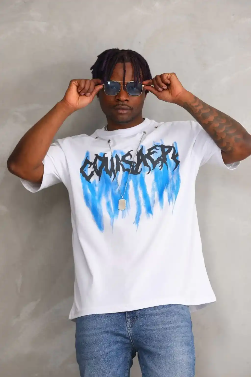 Unisex Oversize Kolye Dahil T-Shirt - Beyaz