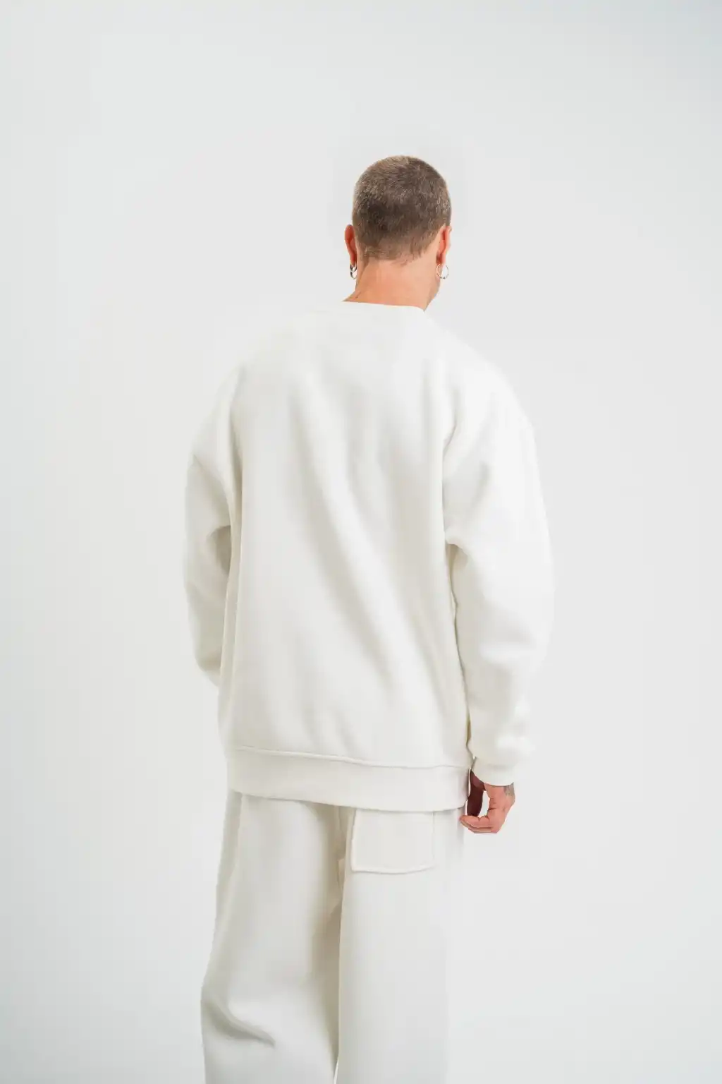 • Uzun Kol Bisiklet Yaka Basic SweatShirt - Beyaz