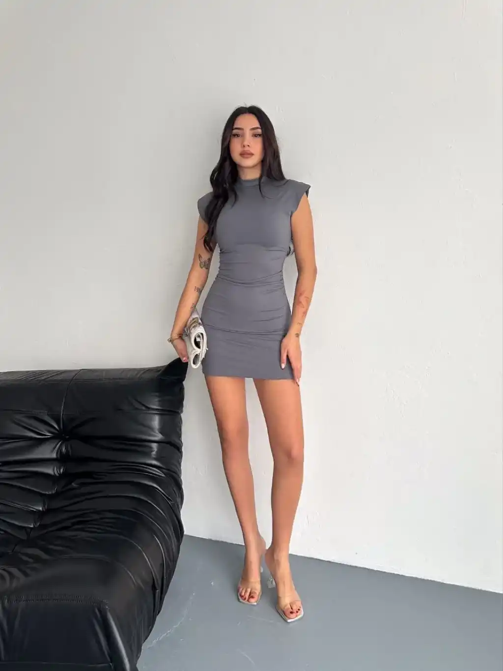 Yarım Bogazlı Kolsuz Mini Boy Elbise - Gri